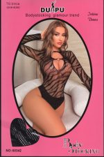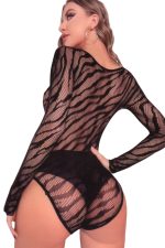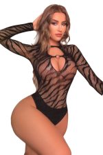 Διχτυωτό κορμάκι μακρυμάνικο με τιγρέ print και σχέδιο στο ντεκολτέ.